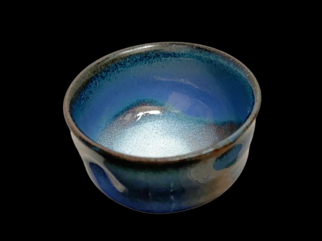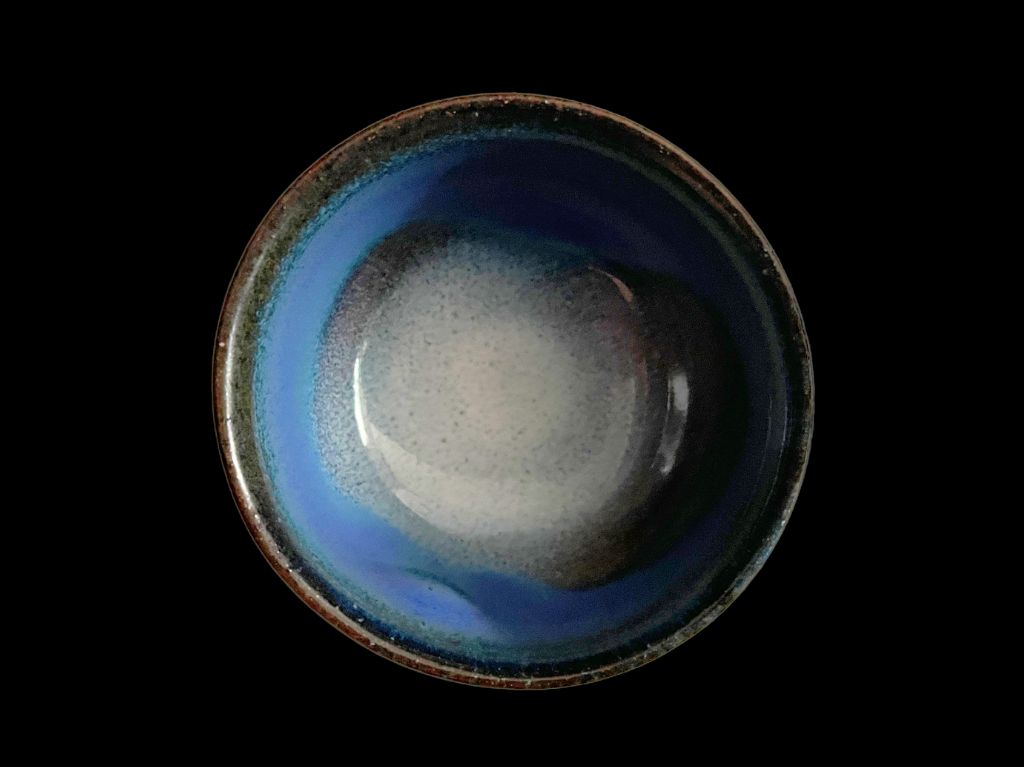 Using a unique glaze, the blue hue of the pieces is inspired by the indigo of Lake Biwa.